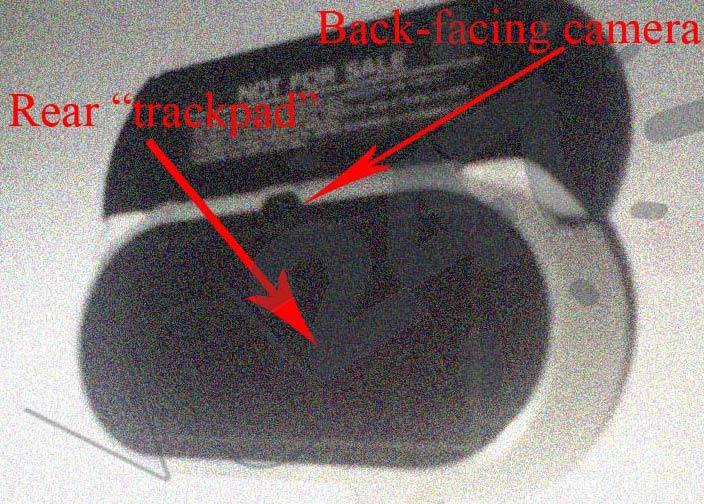 Atrás o aparelho terá mais uma câmera e outro Trackpad misterioso. Além disso, pelas imagens dá para perceber que a Sony resolveu combinar o design do PSP Go com o PSP antigo para criar o novo aparelho.