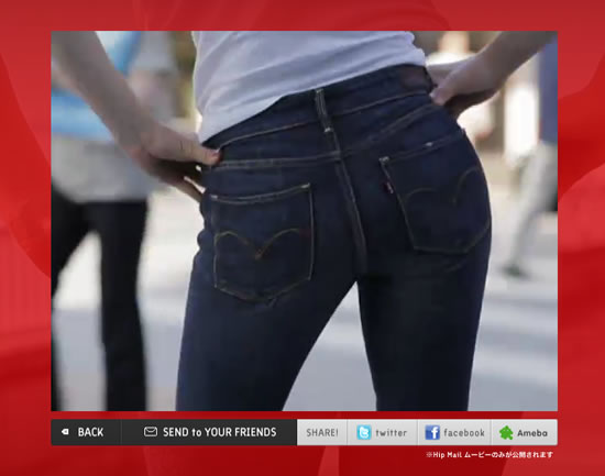 A Levi’s japonesa está com uma campanha interessante. Um site onde você pode escrever uma frase pequena e várias bundas interpretam a mensagem desenhando a letra numa dança em vídeo para lá de engraçada.