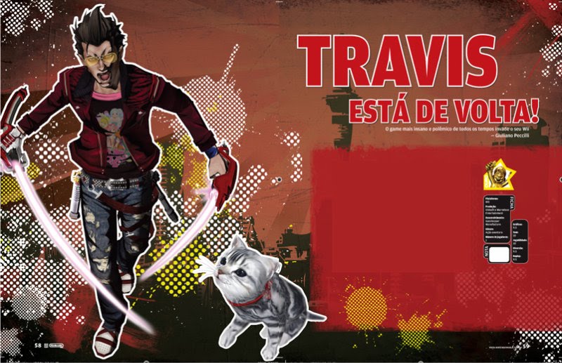 A Nintendo tem alguns dos personagens mais amados e famosos dos games, mas basicamente para uma revista com 85 páginas isso significa ter Mario 9 vezes ao ano e no restante tentar algo diferente. Me lembro que em uma das edições queríamos falar de No More Heroes 2, um game do Suda 51, produtor de games japonês e bem controverso. Para mim, fugir do encanador bigodudo de vez em quando era importante para dar um “respiro” para a revista. Com um dos repórteres decidi montar uma matéria de 7 páginas. Naquela época eu não tinha o jogo e nem as imagens para ilustrar. E uma coisa que nós prezávamos era ter o contato com os jogos para escrever análises da maneira mais honesta possível. Sem jogo a gente não fazia isso e era por isso que pensar numa análise sem o game estar nas lojas era um risco.